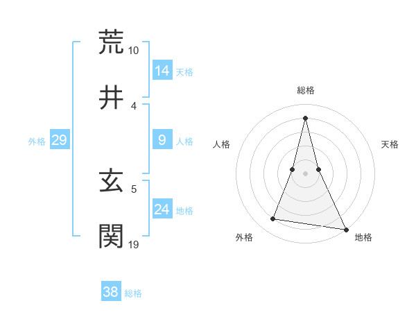 荒井 玄関さんを姓名の画数から五運を鑑定