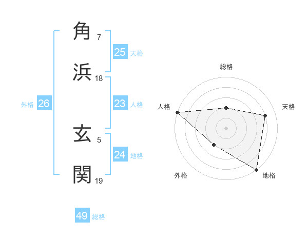 角浜 玄関さんの総格は49画の2点!