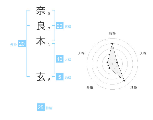 奈良本 玄さんの総格は25画の4点!