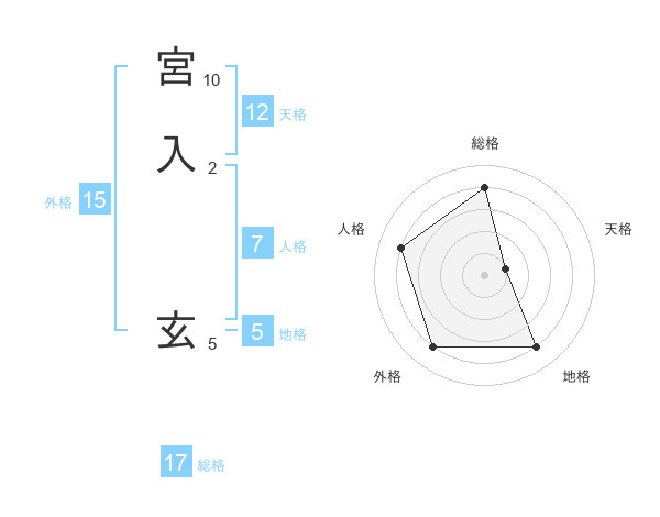 宮入 玄さんの総格は17画の4点!