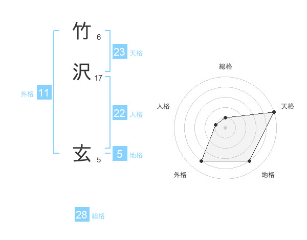 竹沢 玄さんの天格は23画の5点!