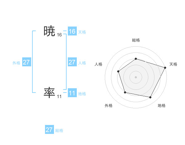 暁 率さんの総格は27画の3点!