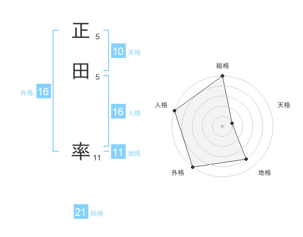 正田 率さんの総格は21画の5点!