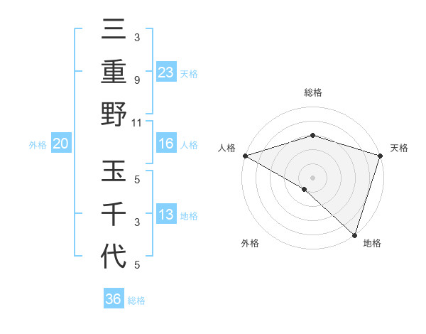 三重野 玉千代さんを姓名の画数から五運を鑑定