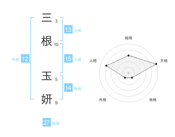 三根 玉妍さんの天格は13画の5点!