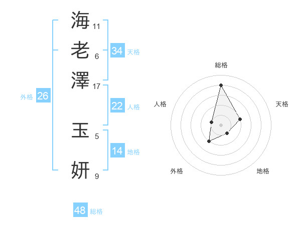 海老澤 玉妍さんの総格は48画の4点!
