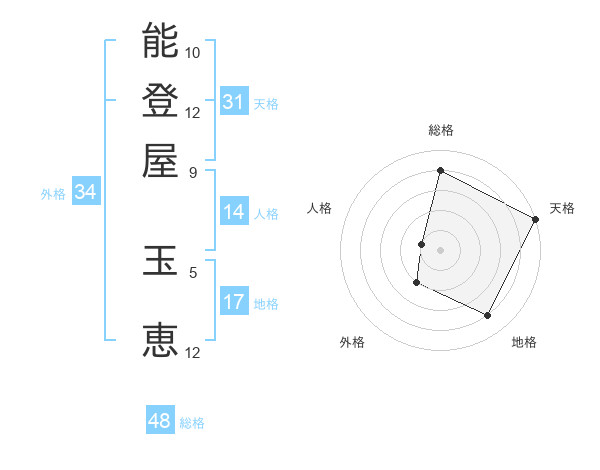 能登屋 玉恵さんを姓名の画数から五運を鑑定