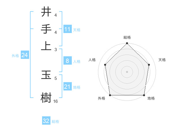 井手上 玉樹さんの総格は32画の5点!