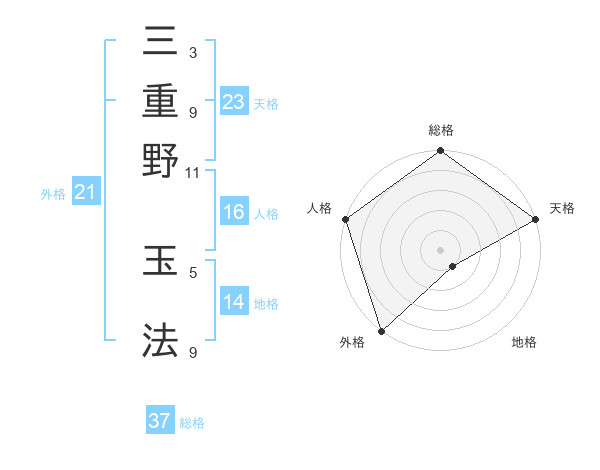 三重野 玉法さんを姓名の画数から五運を鑑定