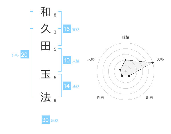 和久田 玉法さんを姓名の画数から五運を鑑定