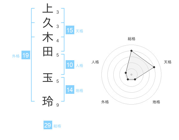 上久木田 玉玲さんを姓名の画数から五運を鑑定