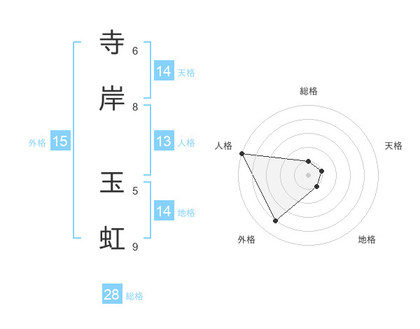 寺岸 玉虹さんを姓名の画数から五運を鑑定