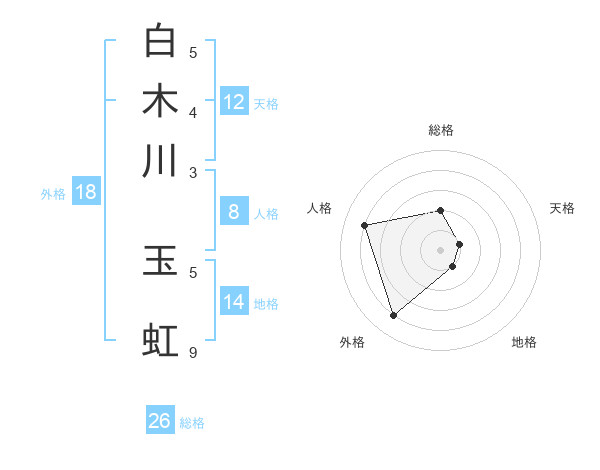 白木川 玉虹さんの総格は26画の2点!