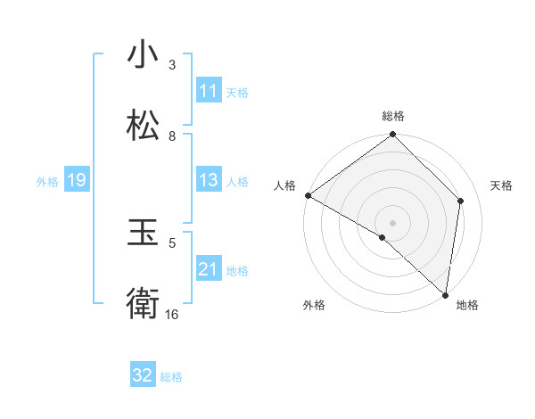 小松 玉衛さんを姓名の画数から五運を鑑定