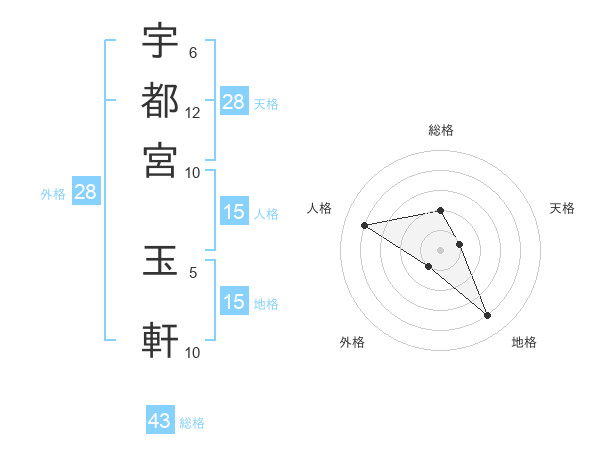 宇都宮 玉軒さんを姓名の画数から五運を鑑定