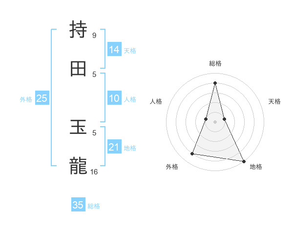 持田 玉龍さんの総格は35画の4点!