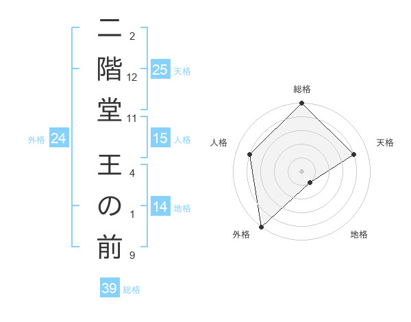 二階堂 王の前さんを姓名の画数から五運を鑑定