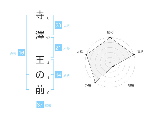 寺澤 王の前さんを姓名の画数から五運を鑑定