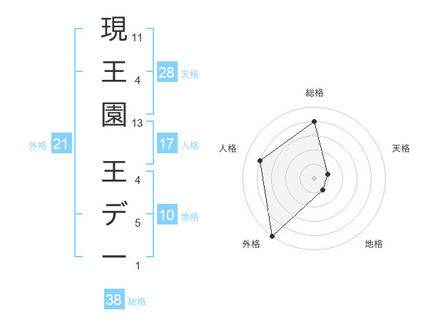 現王園 王デーさんを姓名の画数から五運を鑑定