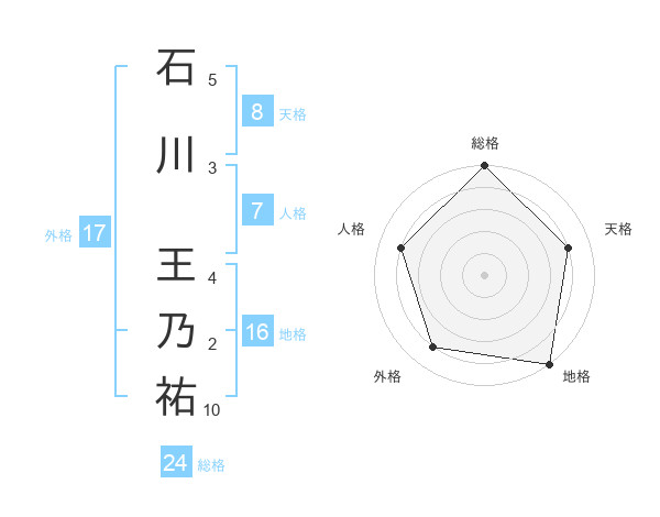 石川 王乃祐さんを姓名の画数から五運を鑑定