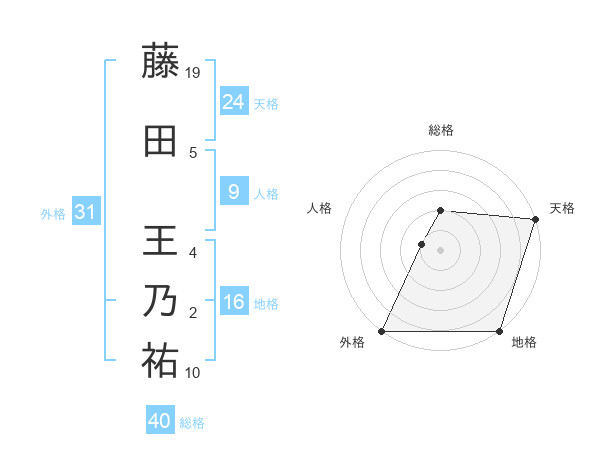 藤田 王乃祐さんを姓名の画数から五運を鑑定