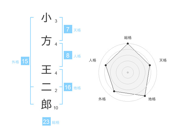 小方 王二郎さんを姓名の画数から五運を鑑定