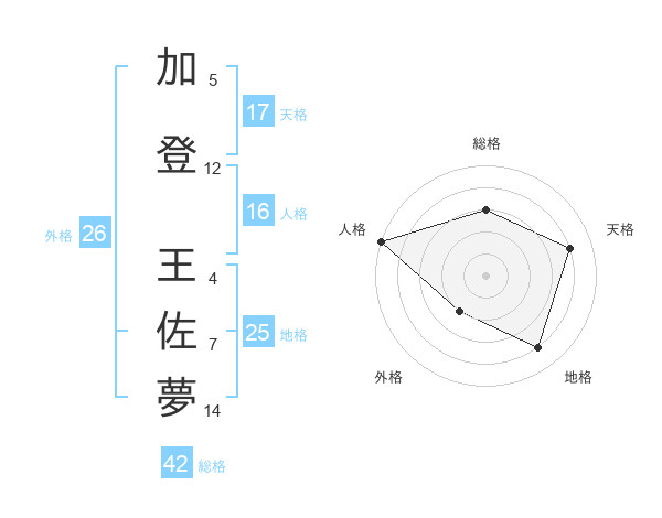 加登 王佐夢さんを姓名の画数から五運を鑑定