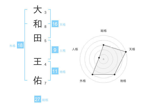 大和田 王佑さんを姓名の画数から五運を鑑定
