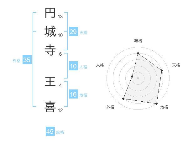 円城寺 王喜さんの総格は45画の4点!
