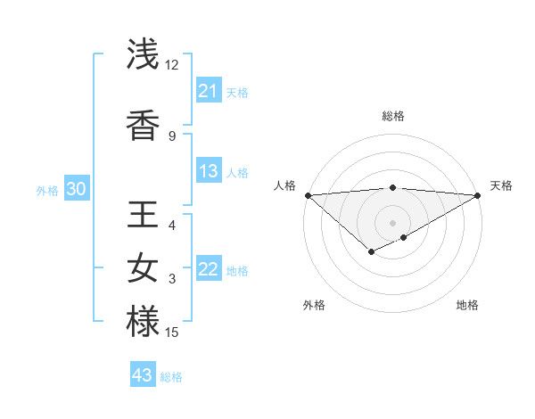 浅香 王女様さんを姓名の画数から五運を鑑定