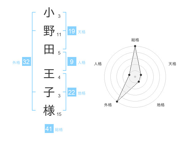 小野田 王子様さんを姓名の画数から五運を鑑定