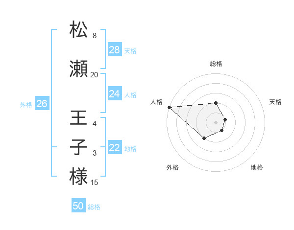 松瀬 王子様さんを姓名の画数から五運を鑑定
