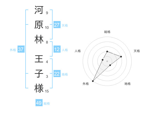 河原林 王子様さんの外格は37画の5点!