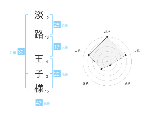 淡路 王子様さんの総格は47画の5点!
