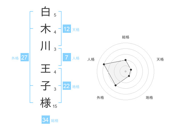 白木川 王子様さんを姓名の画数から五運を鑑定