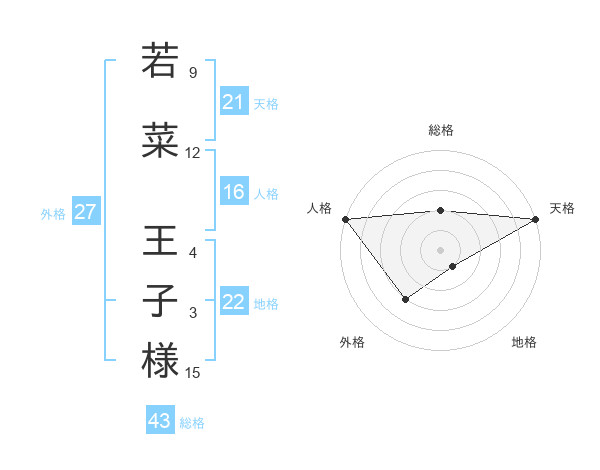 若菜 王子様さんを姓名の画数から五運を鑑定