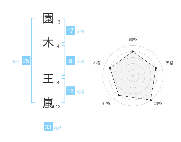 園木 王嵐さんを姓名の画数から五運を鑑定
