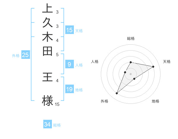 上久木田 王様さんを姓名の画数から五運を鑑定