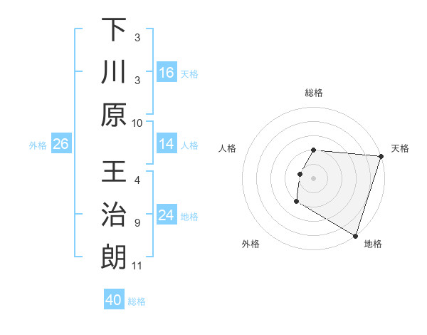 下川原 王治朗さんを姓名の画数から五運を鑑定