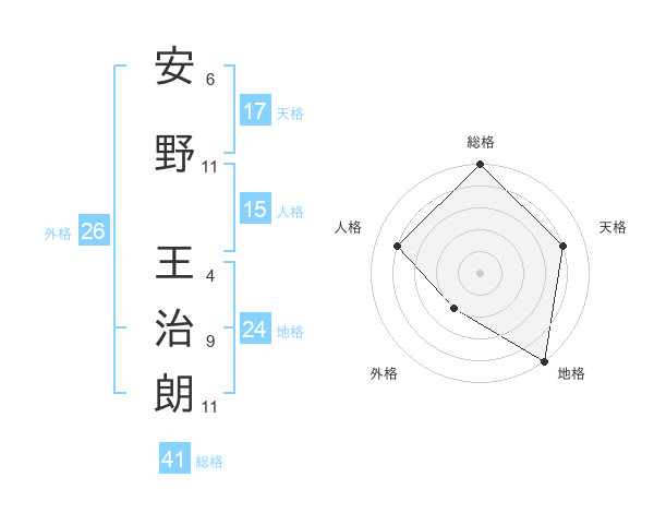 安野 王治朗さんの天格は17画の4点!