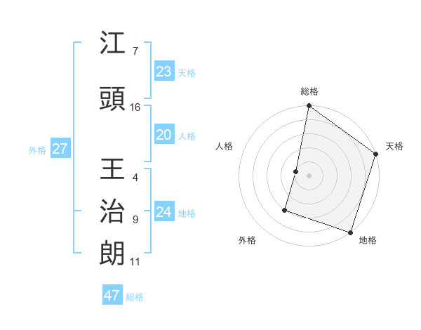 江頭 王治朗さんを姓名の画数から五運を鑑定