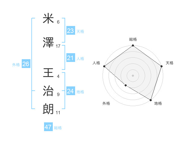 米澤 王治朗さんを姓名の画数から五運を鑑定