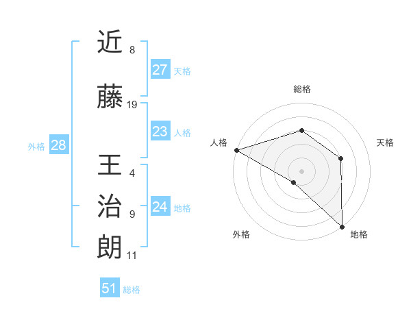 近藤 王治朗さんを姓名の画数から五運を鑑定