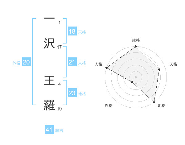 一沢 王羅さんを姓名の画数から五運を鑑定