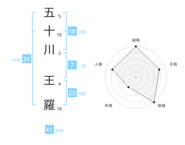 五十川 王羅さんを姓名の画数から五運を鑑定