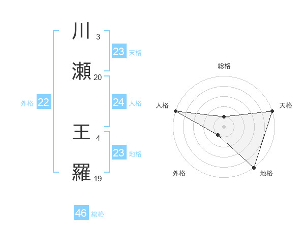 川瀬 王羅さんを姓名の画数から五運を鑑定