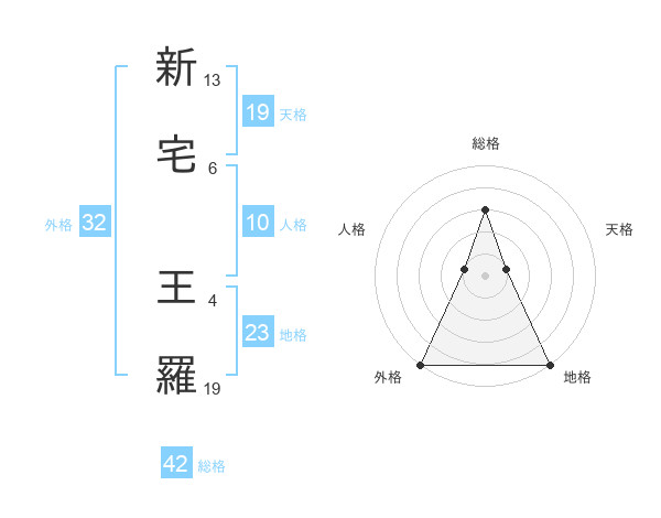 新宅 王羅さんを姓名の画数から五運を鑑定