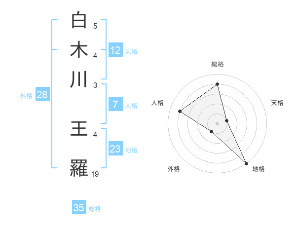 白木川 王羅さんの総格は35画の4点!