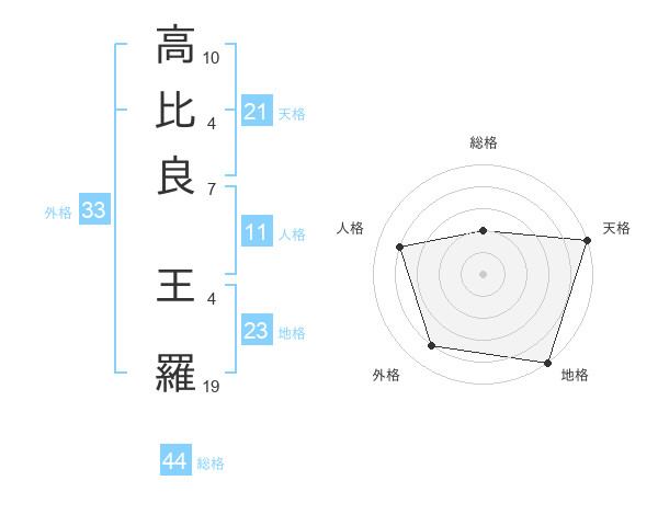 高比良 王羅さんの外格は33画の4点!