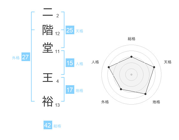 二階堂 王裕さんの外格は27画の3点!